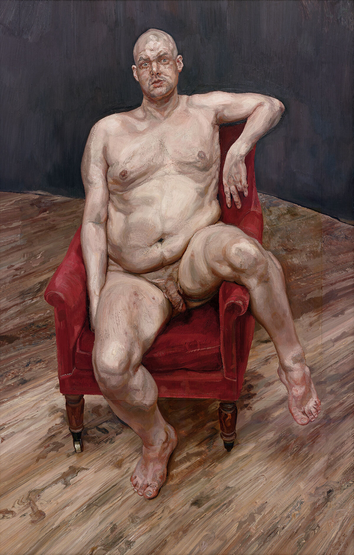 قلم موی لوسین فروید تکهرنگهای گرم و تند و کدر را، با ضخامت و غلظتی شدید روی بوم مینشاند، تا زوایای یک پیکر برهنه را با تمام شحم و لحم اضافی آن مجسم کند.